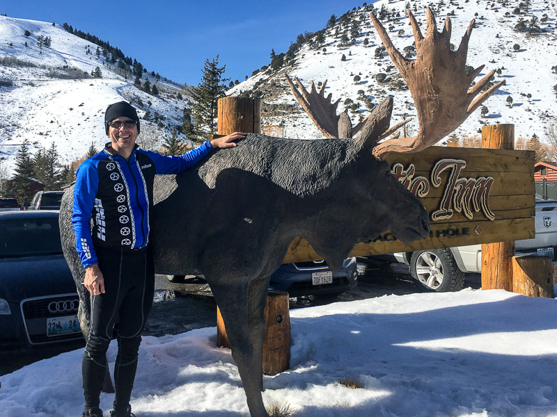 In the town of Jackson we couldn't resist posing next to a stuffed moose. The moose is such a charming-looking animal.